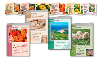 Beispiele Paketinhalt: Dorette Digel, Freue dich Welt / Doro Zachmann & Marianne Borst, Ein Wunder in meinen Händen / Gott sorgt für mich - Impulse und Gedanken aus Psalm 23 / Hermann Multhaupt, Mein Wunsch für deine Lebensreise / Doro Zachmann, Rosengrüße mit guten Wünschen. Die abgebildeten Motive des Paketangebots zeigen nur Beispiele möglicher Inhalte. Die tatsächlich enthaltene Ware kann davon abweichen. Solange der Vorrat reicht.