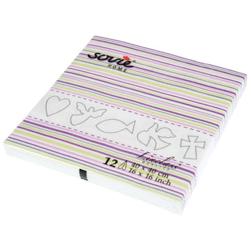 12 Servietten im Streifen-Design mit christlichen Symbolen.