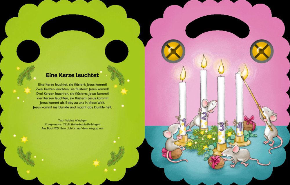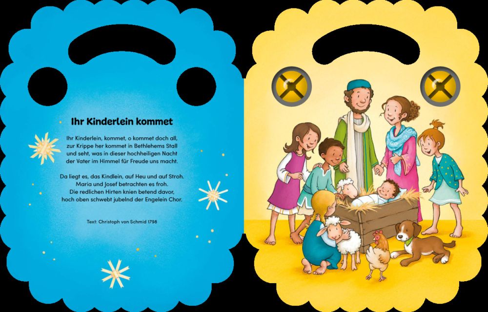 Vier bekannte Kinderlieder aus Gottesdienst und Krabbelgruppe laden hier zum Mitsingen und Musizieren ein. Am Handgriff lässt sich das Buch gut festhalten, um die eingearbeiteten Glöckchen zum Klingen zu bringen. Nicht nur die kindliche Freude am Singen findet so Ausdruck: Spielerisch werden Rhythmusgefühl, Konzentration, Gehör und sprachliche Entwicklung gefördert.