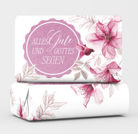 Entdecke die sanfte Pflege unserer hochwertigen Schafmilchseife mit stilvoller rosa-roter Lilienillustration und dezenten Blättern. Der ermutigende Spruch "Alles Gute und Gottes Segen" macht sie zu einem besonderen Highlight, ideal für dich selbst oder als liebevolles Geschenk.