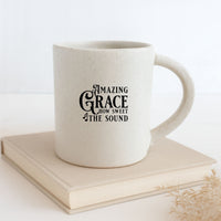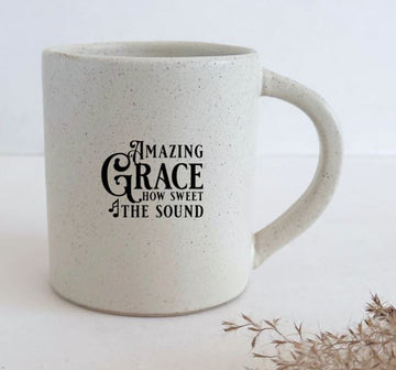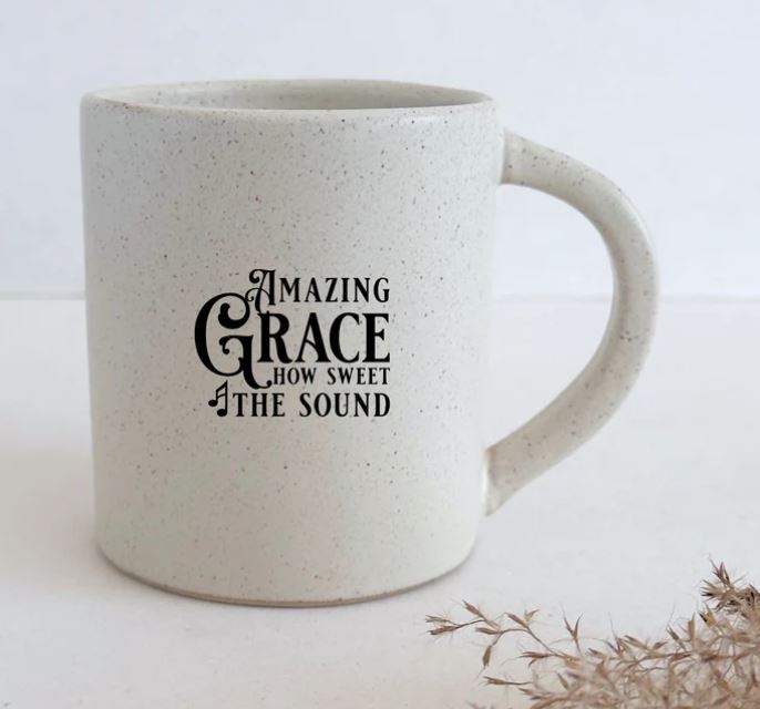 Diese liebevoll handgefertigte Steingut-Tasse mit reaktiver Sesamglasur und der Gravur "Amazing Grace, How Sweet the Sound" ist eine wahre Inspiration! Diese edle Tasse mit ihrer sanft gesprenkelten Oberfläche ist nicht nur ein praktisches Lieblingsstück, sondern auch eine tägliche Erinnerung an Gottes Gnade und seinen Trost.