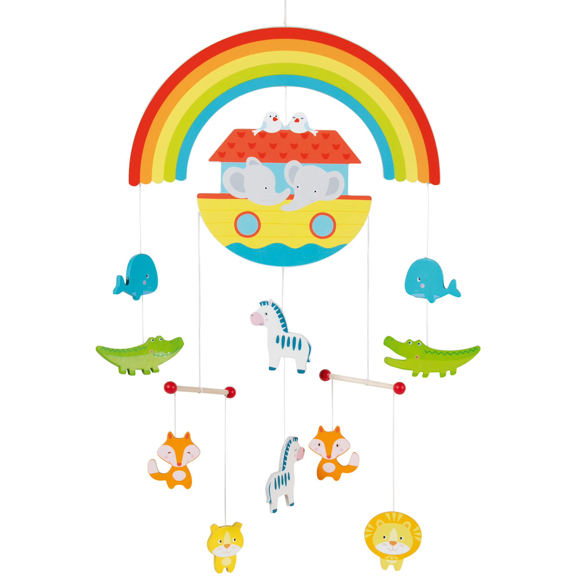Das bunte Mobile aus hochwertigem, nachhaltigem Holz, mit einem Regenbogen und niedlichen Tieren lädt zum Staunen und Träumen ein. Fördert spielerisch die visuelle Wahrnehmung der Kleinsten.