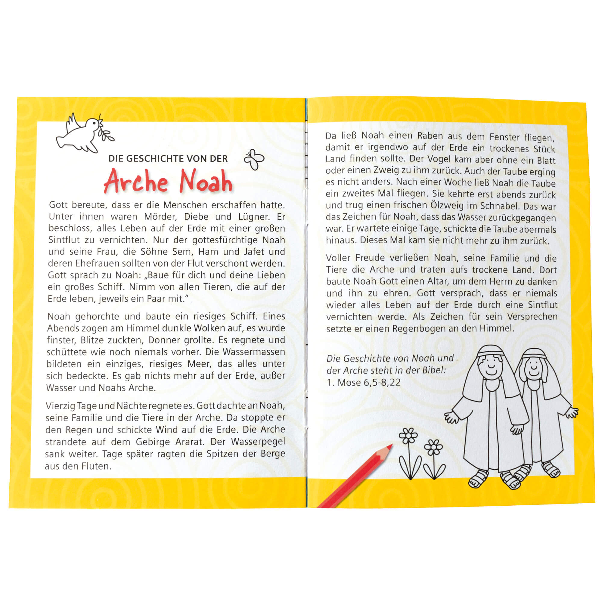 Mit Hilfe des Malheftes lernen kleine Bibelentdecker die Geschichte von Noah, der Arche und den Tieren kennen. Die liebevollen Zeichnungen sind schon für die Jüngsten zum Ausmalen geeignet. Zusätzlich wird die Bibelgeschichte kindgerecht erzählt - ideal zum Vorlesen.