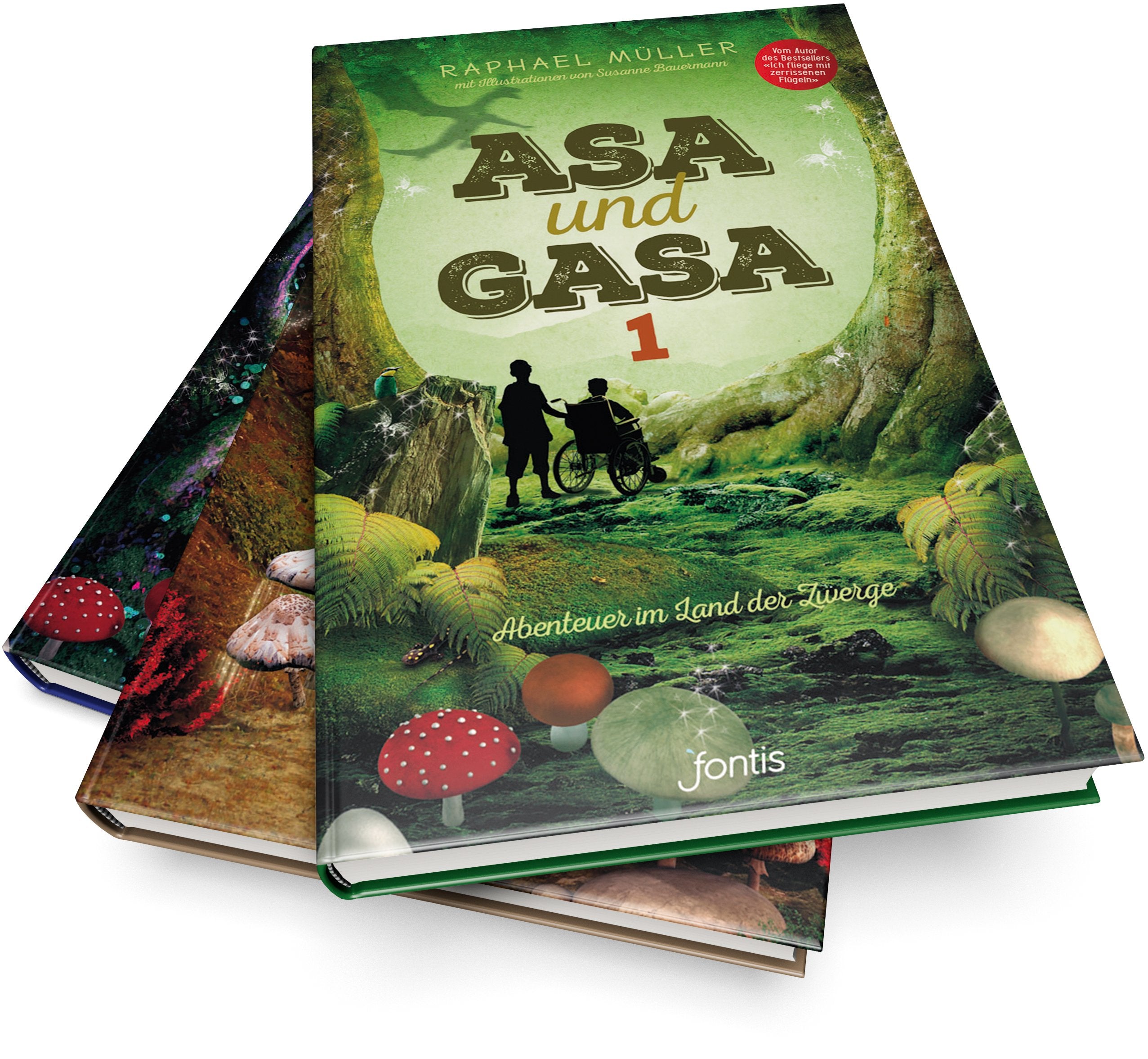 Alle drei Fantasy-Bände "Asa und Gasa Abenteuer im Land der Zwerge" des Bestseller-Autors Raphel Müller in einem Paket.