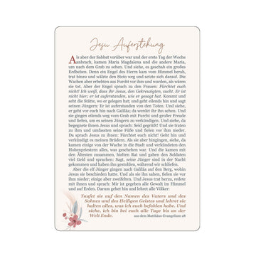 Für kleine Grüße oder als Mini-Poster: Postkarte zu Ostern mit dem Text der Auferstehungsgeschichte aus dem Matthäus-Evangelium Kapitel 28.