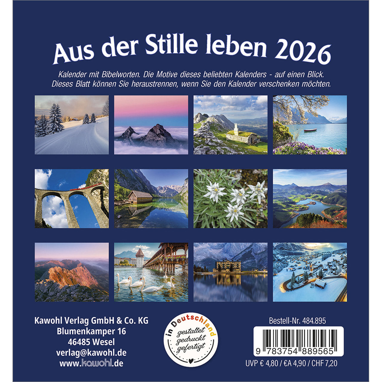 Der Kalender im beliebten, quadratischen Format mit Bergbildern möchte - wie eine Bergwanderung - einladen, aus der Stille zu leben.