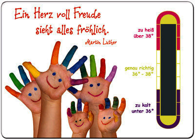 Bade-Thermometer - Ein Herz voll Freude (Motiv bunte Kinderhände)