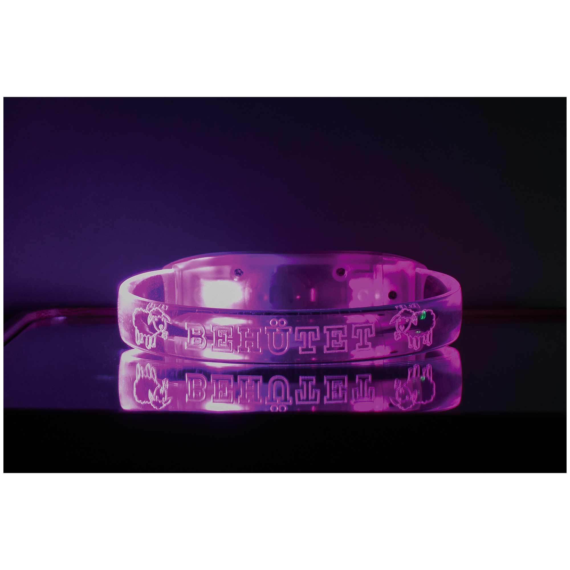 Insgesamt stehen 4 verschiedene Armbandfarben und 3 verschiedene Licht-Modi zur Auswahl: langsames und schnelles Blinken sowie Dauerleuchten.