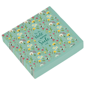 Die hübsche Gestaltung der Papier-Servietten dekoriert den Tisch. Und der Text setzt einen kleinen Impuls, lädt zum Tischgebet ein und vermittelt dem Gast ein herzliches Willkommen.
