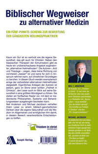 Eine verwirrende Vielfalt von medizinischen Methoden verlangt heute nach kluger Einschätzung und Entscheidung. Die Autoren informieren über ganzheitliche Gesundheit und Medizin auf der Grundlage der Bibel und helfen, im Licht dese Glaubens medizinische Philosophien, Systeme und Behandlungsweisen anhand ihrer Geschichte, ihrer Ganzheitlichkeit und wissenschaftlicher Kriterien ausgewogen zu beurteilen.