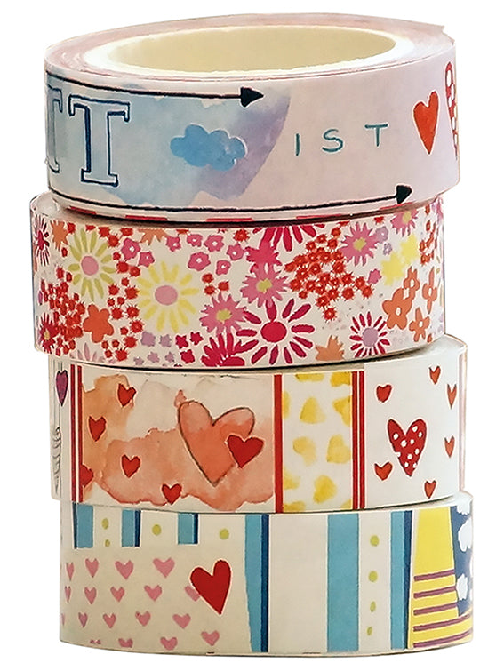 Blumen und Herzen - Washi Tapes Set (4 Rollen)