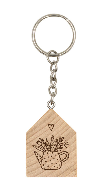 Ein Schmuckstück für Schlüssel oder Tasche sind diese Anhänger aus Buchenholz mit hochwertiger Gravur und Metallkette mit Schlüsselring. Mit 2,8 x 3,8 x 1 cm sind sie klein und zierlich und tragen am Schlüssel nicht zu dick auf.
