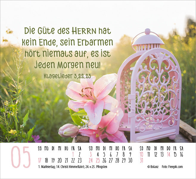 Jeder weiß: Wer dankbar durchs Leben geht, ist viel zufriedener und lebensfroher, auch wenn es gerade mal nicht so gut läuft. Die liebevollen Bilder und Texte dieses Kalenders geben jeden Tag Impulse zum Thema Dankbarkeit.
