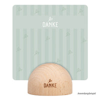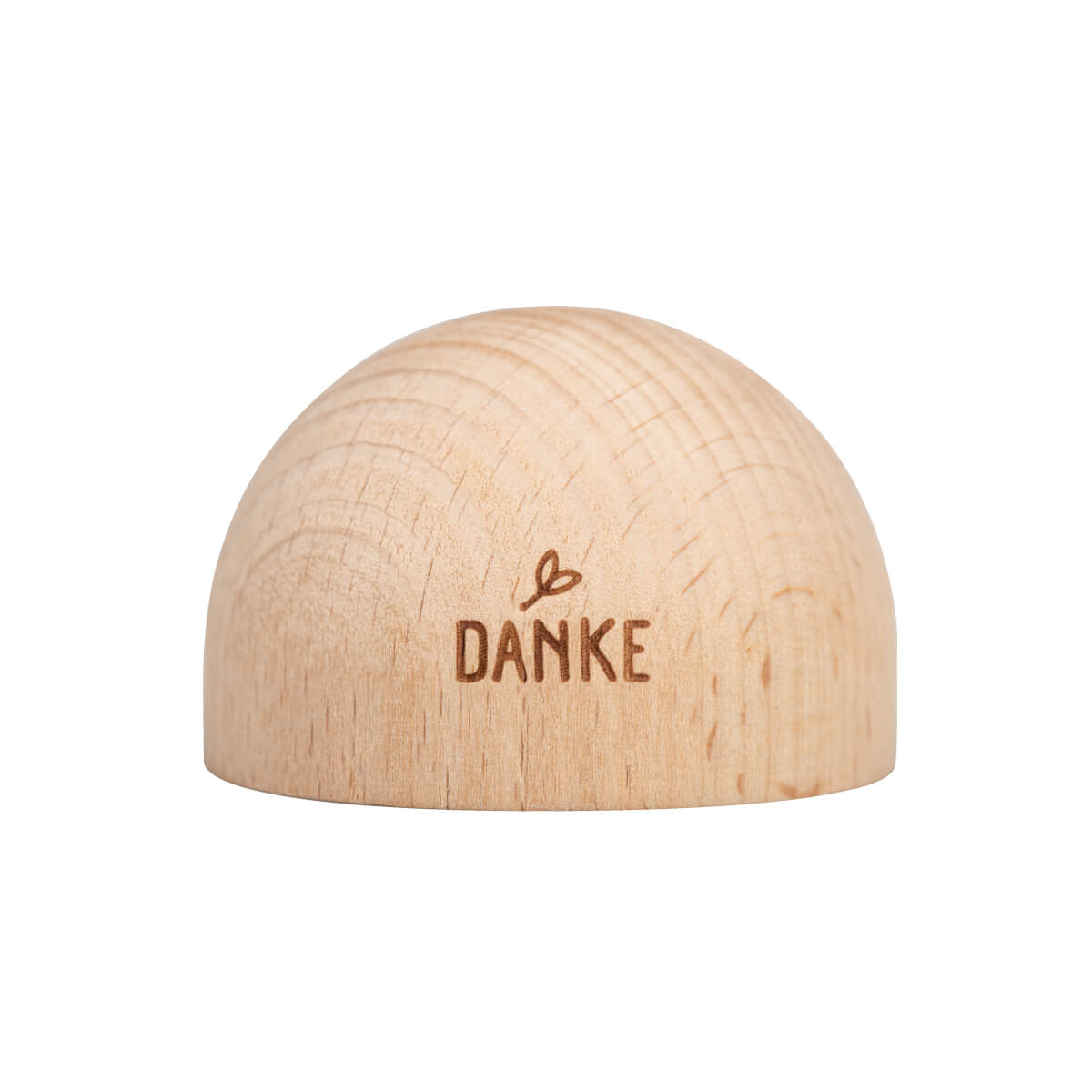 Mit seinem lasergravierten Wort "Danke" mit Miniatur-Symbol ist der Kartenhalter mehr als nur ein praktisches Geschenk.