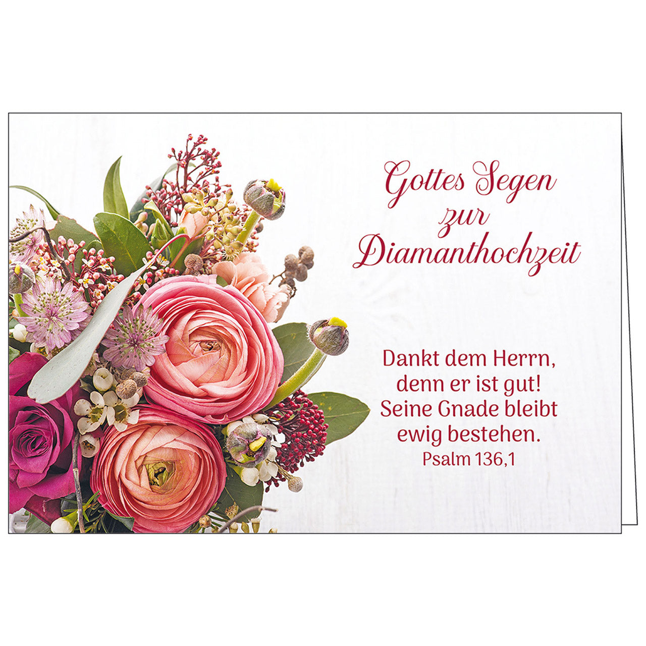 Anlass-Faltkarte zur Diamanthochzeit mit einer guten Botschaft und liebevollen Gestaltung