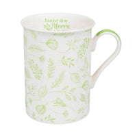 Schöne Tasse in frischem grünen Design mit Text: Danket dem Herrn