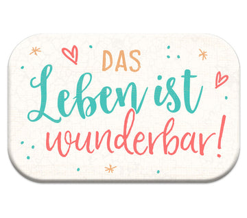 Der Magnet und ein farbiges Kärtchen mit Bibelzitat auf der Rückseite sind zusammen in einer Folie verpackt.