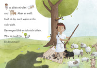 Wenn wilde Tiere kommen, beschützt er die Herde. Er ist ein guter Hirte. Er ist zwar klein, aber Gott hat Großes mit ihm vor. Als eines Tages ein Bote kommt, ahnt niemand, dass sich das Leben von David schon bald ändern wird.