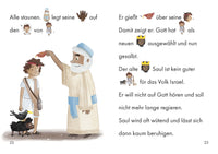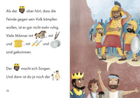 Er wird zum neuen König gesalbt und kann mit Gott an seiner Seite sogar den stärksten Riesen besiegen. Bald beschützt er nicht mehr die Schafe seines Vaters, sondern die Menschen aus dem Volk Israel. David lernt Gott ganz neu kennen: als seinen Hirten und Helfer.