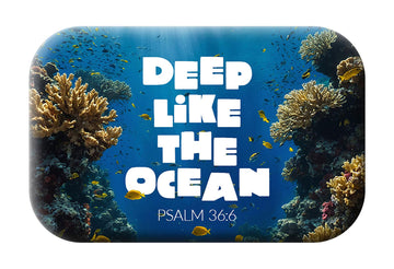 Der Magnet ist zusammen mit einem Minikärtchen in einer Folie verpackt. Auf der Vorderseite des Kärtchens ist das Motiv des Magneten zu sehen, auf der Rückseite befindet sich ein passendes Bibelzitat.