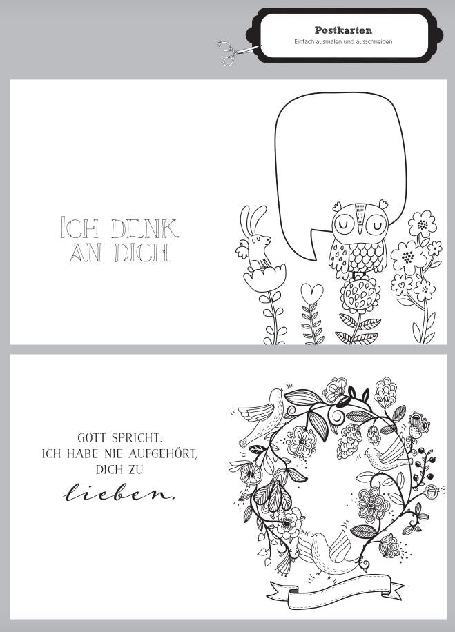 Ein inspirierendes biblisches Mal-, Zeichen- und Ausfüllbuch. Mit doppeltem Nutzen: Es enthält auch Karten, Lesezeichen und Geschenkanhänger zum Selbergestalten.