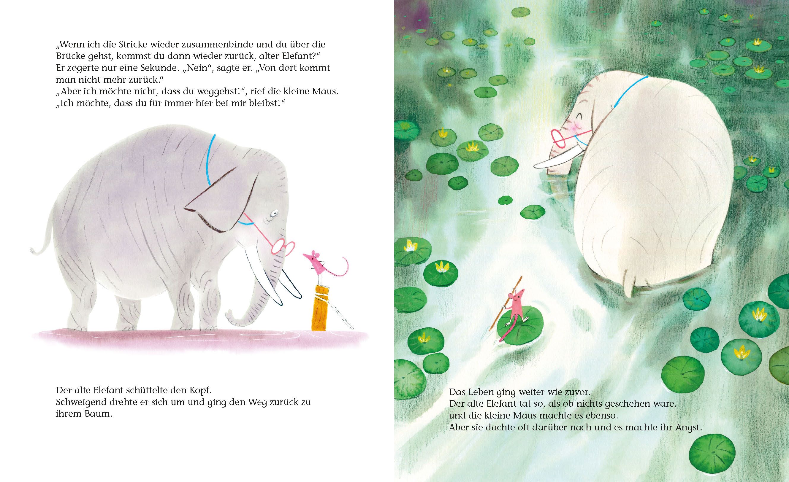 Der alte Elefant und die junge Maus sind dicke Freunde. Doch als der alte Elefant sich auf die Reise ins himmlische Reich der Elefanten vorbereitet, muss die kleine Maus lernen, ihn gehen zu lassen. Eine sensible und zugleich humorvolle Geschichte über Freundschaft, Tod und Loslassen-Können.