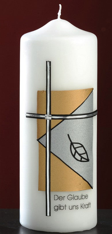 Der Glaube gibt uns Kraft - Trauerkerze - von Hand verziert