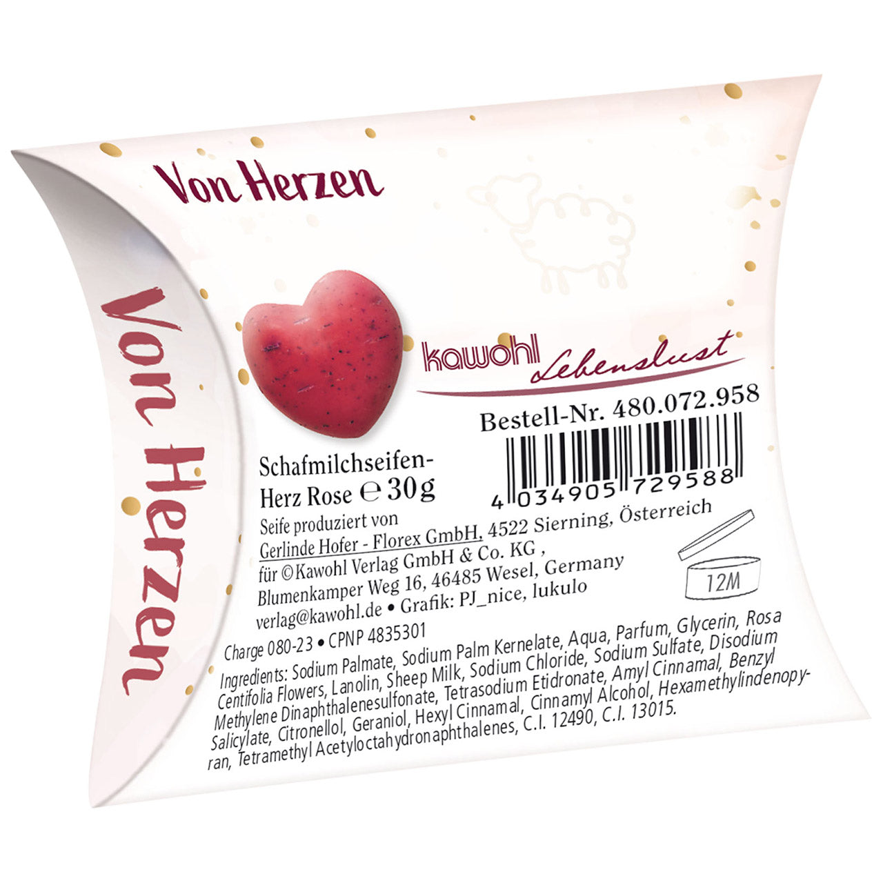 Inhalt: 30 g Schafmilchseife in Herzform