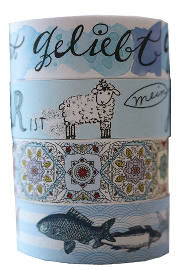 Washi Tapes oder Masking Tapes - dieser Trend farbigbunter Klebebänder auf der Basis von durchscheinendem Reispapier stammt aus Japan. Das farblich abgestimmte 4er-Set beinhaltet einen beliebten Bibelvers sowie verschiedene Blumen- und Herzmuster. Für die kreative Bibelarbeit (Bibel kreativ, Bible Art Journaling...) oder zum Verschönern und Dekorieren von Karten, Geschenken u.v.m!