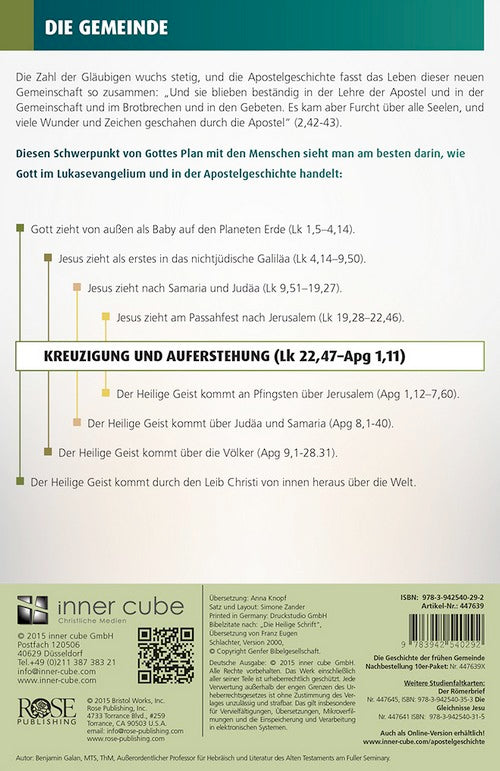 - Übersichten zu den wichtigsten Predigten von Petrus, zu den wichtigsten Lebens- und Dienststationen der Apostel Petrus und Paulus und zu den Missionsreisen von Paulus.