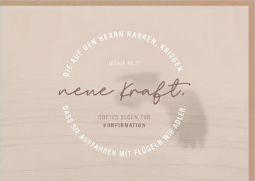Diese Karte kombiniert modernes Design mit einer tiefgehenden christlichen Botschaft. Sie ist ideal, um Konfirmanden in ihrem Glauben zu stärken und ihnen Gottes Kraft für ihren Lebensweg zuzusprechen.