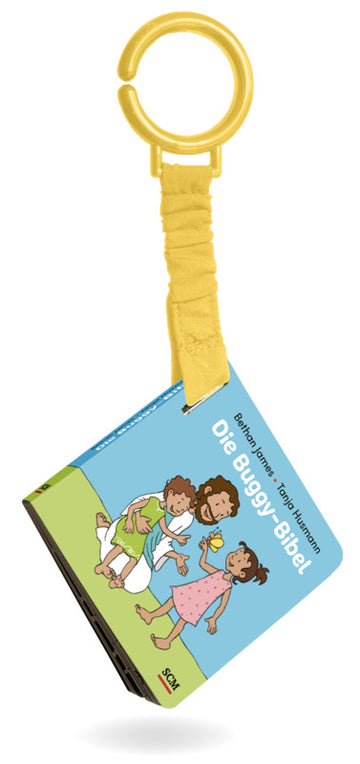 Fünf Bibelgeschichten für die Kleinsten kann man mit einem Clip einfach am Buggy oder Kindersitz befestigen. So müssen Eltern auf Autofahrten oder beim Spazierengehen mit Buggy nicht ständig das Buch vom Boden aufheben, weil es gut befestigt ist! Mit den Bibelgeschichten "Die Schöpfung", "Die Arche Noah", "Jesus wird geboren", "Der gute Hirte", "Gott liebt Kinder".