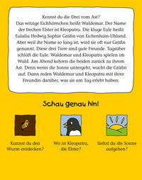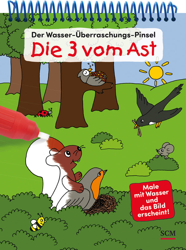 Mit diesem außergewöhnlichen Malbuch können schon die Kleinsten auf spielerische Weise die Abenteuer der 3 vom Ast entdecken. Dieser Titel enthält fünf Entdecker-Bilder mit kleinen Suchaufgaben und jeweils einer kurzen Vorlesegeschichte. Hier lernen Kinder Waldemar, Kleopatra und die gräfliche Eule kennen und erfahren, wie gut Gott sich um alle Tiere kümmert. Die Geschichten stammen aus unterschiedlichen Episoden der Hörspiel-Sammelbox. Der Wasser-Überraschungs-Pinsel lässt sich dazu immer wieder neu mit Wasser auffüllen.