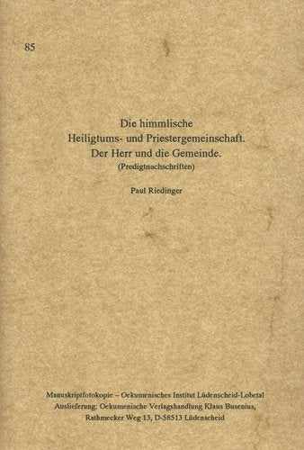 Die himmlische Heiligtums- und Priestergemeinschaft. Der Herr und die Gemeinde.