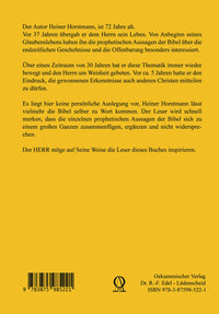 Es liegt hier keine persönliche Auslegung vor, Heiner Horstmann lässt vielmehr die Bibel selber zu Wort kommen. Der Leser wird schnell merken, dass die einzelnen prophetischen Aussagen der Bibel sich zu einem großen Ganzen zusammenfügen, ergänzen und nicht widersprechen.