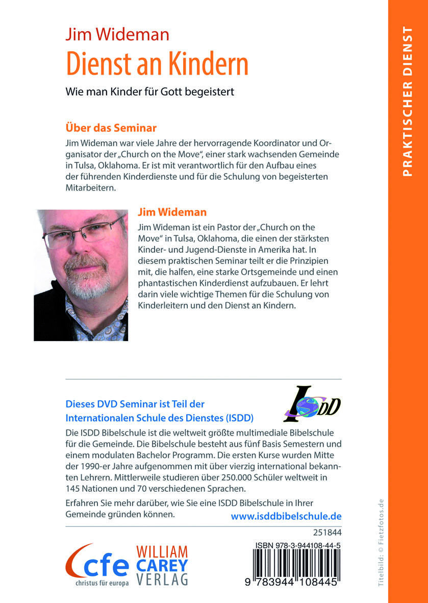 Jim Wideman ist ein Pastor der ?Church on the Move? in Tulsa, Oklahoma, die einen der stärksten Kinder- und Jugend-Dienste in Amerika hat. In diesem praktischen Seminar teilt er die Prinzipien mit, die halfen, eine starke Ortsgemeinde und einen phantastischen Kinderdienst aufzubauen. Er lehrt darin viele wichtige Themen für die Schulung von Kinderleitern und den Dienst an Kindern.