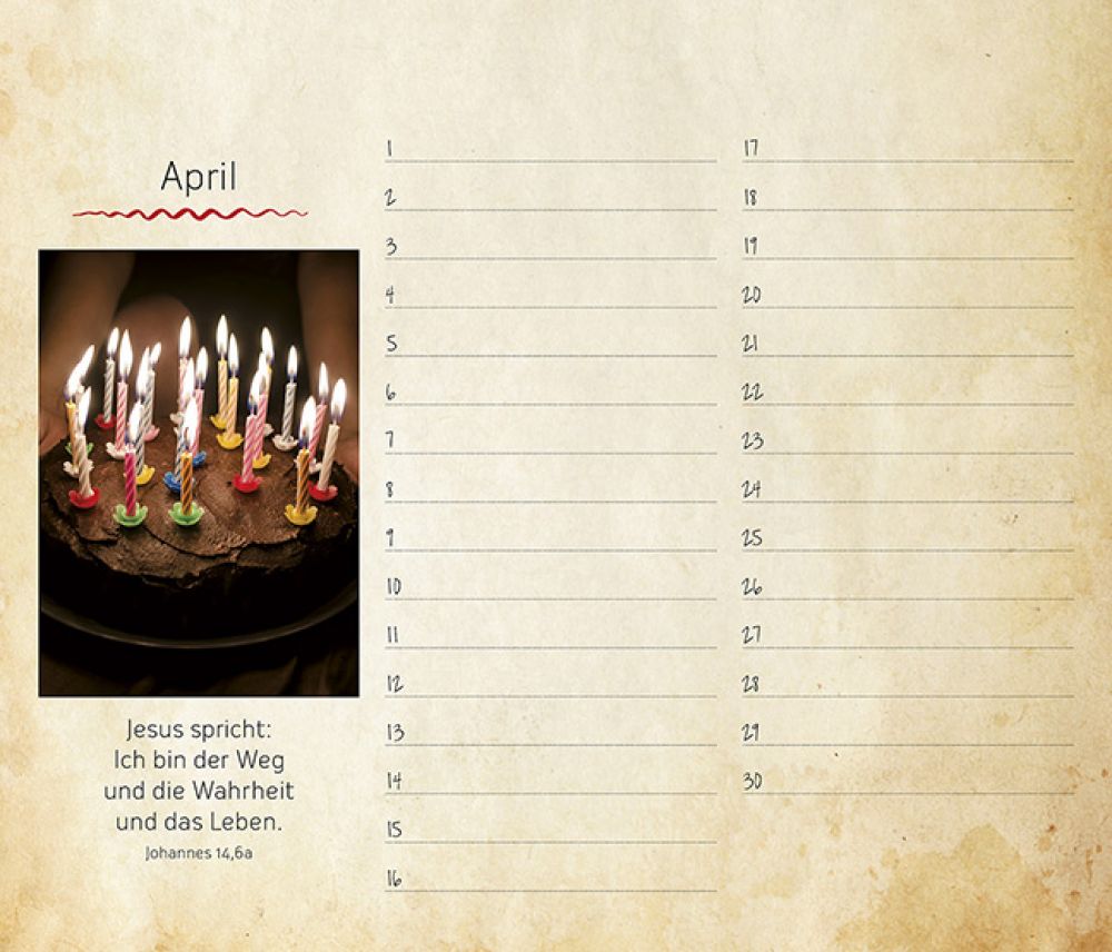 Dieser immerwährende Kalender erinnert an Geburtstage und andere wiederkehrende Termine und begleitet über viele Jahre.