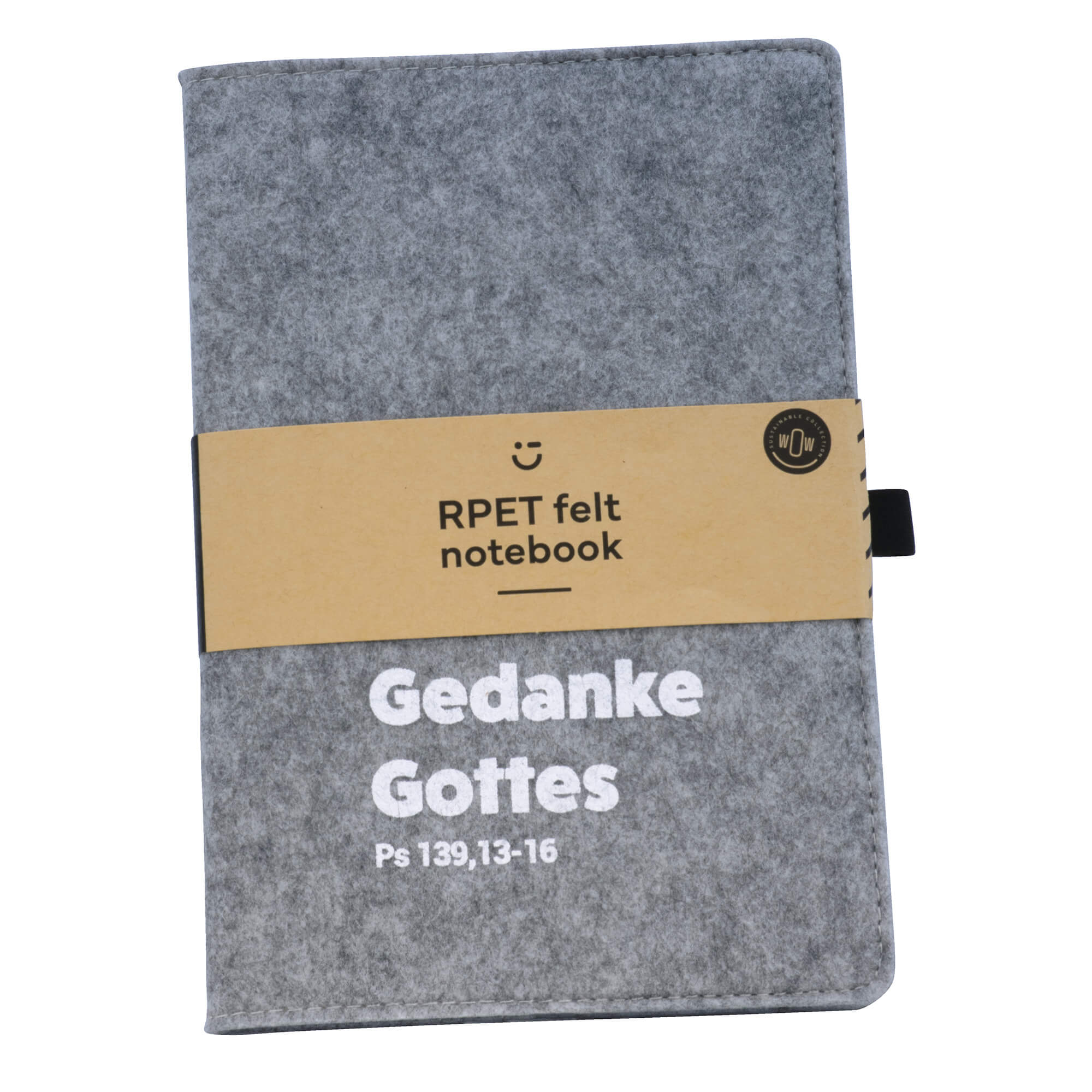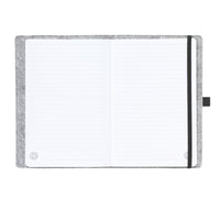 Nachhaltiges A5-Notizbuch aus GRS (Global Recycled Standard) - zertifizierten RPET-Filz, hergestellt aus recycelten PET-Flaschen.