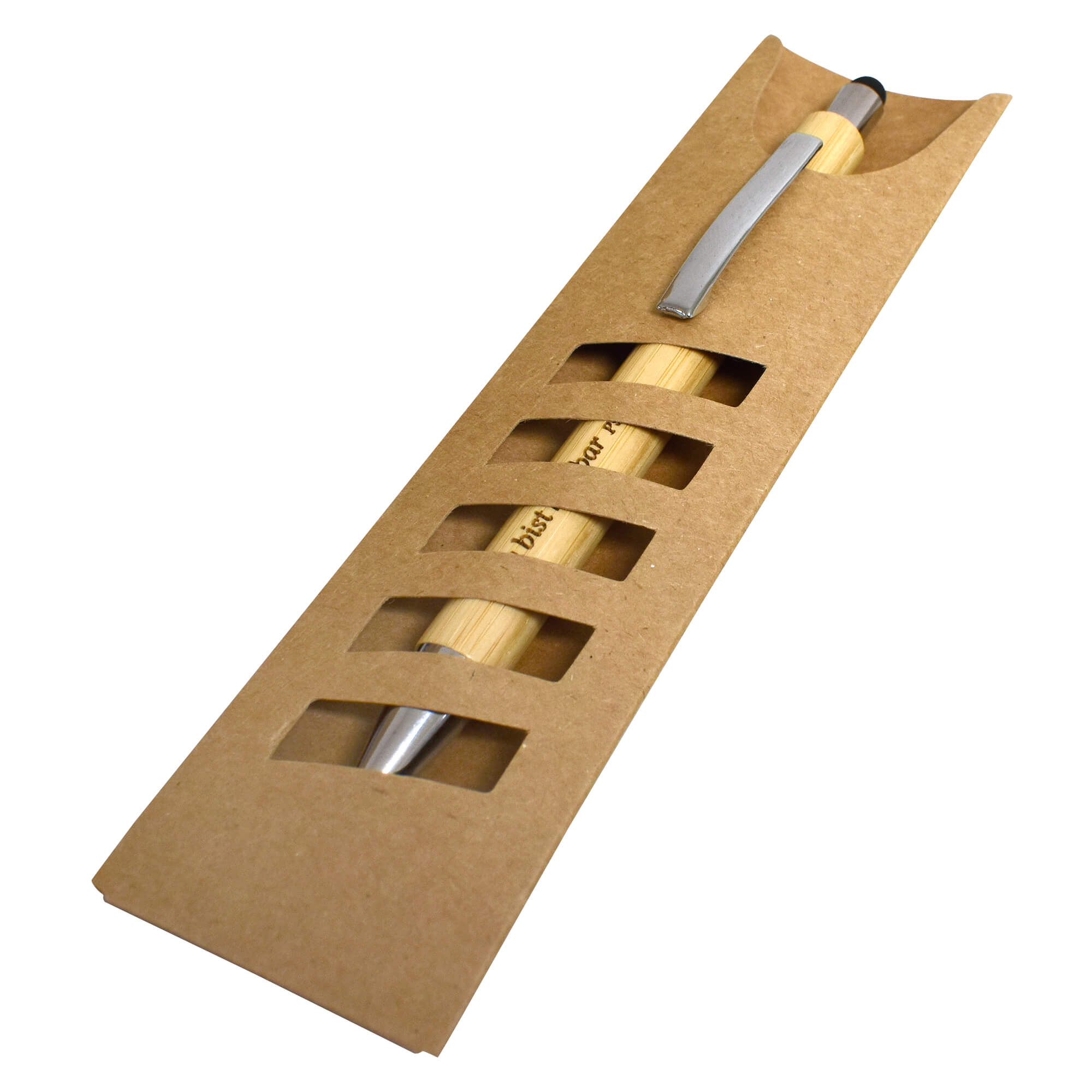 Umweltfreundlicher Kugelschreiber mit Bambusgehäuse, veredelt mit Lasergravur und liebevollem Vers "Du bist kostbar - Ps 139,14".