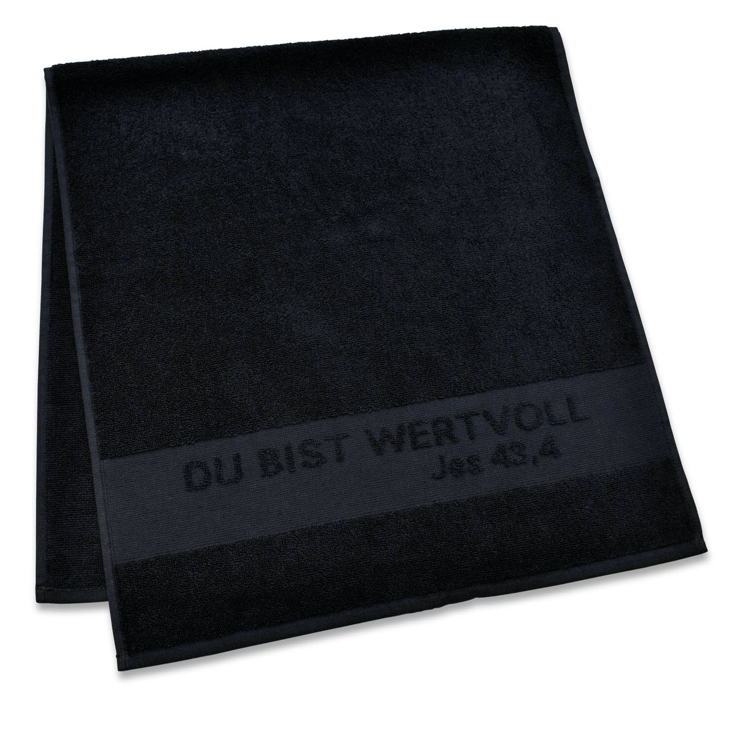 Kuschelweiches Dusch-/Badetuch aus 450 g/qm Baumwoll-Frottee, 70 x 140 cm, 100% Baumwolle, mit Jacquard-gewebtem Vers "Du bist wertvoll Jes 43,4" in Bordüre