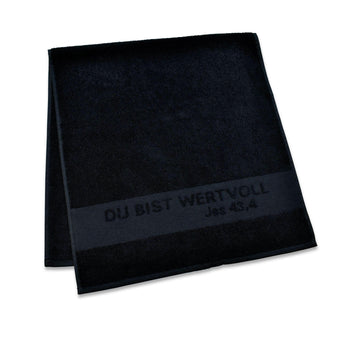 Kuschelweiches Handtuch aus 450 g/qm Baumwoll-Frottee, 50 x 100 cm, 100% Baumwolle, mit Jacquard-gewebtem Vers "Du bist wertvoll Jes 43,4" in Bordüre