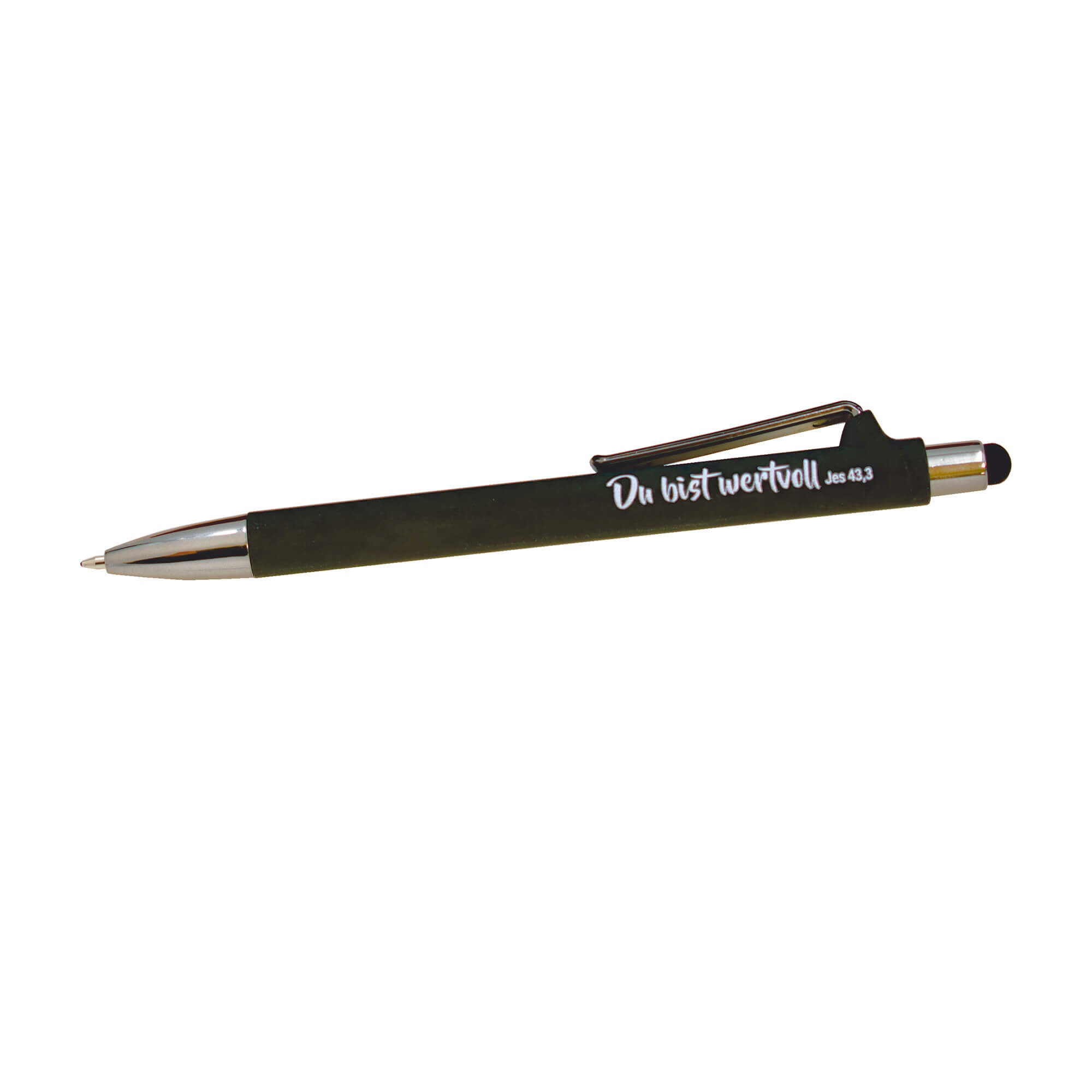 Der liebevoll gestaltete Aufdruck mit den Worten "Du bist wertvoll Jes 43,4", ist nicht nur eine inspirierende Botschaft, sondern macht den Kuli zu einem wunderbaren Begleiter für den Alltag.