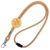Die weiche Baumwollkordel hat einen Sicherheitsverschluss, der schöne runde Stopper aus Bambusholz ist mit Lasergravur veredelt. Am praktischen Karabinerhaken kann man beispielsweise ein Namensschild oder Schlüssel befestigen.