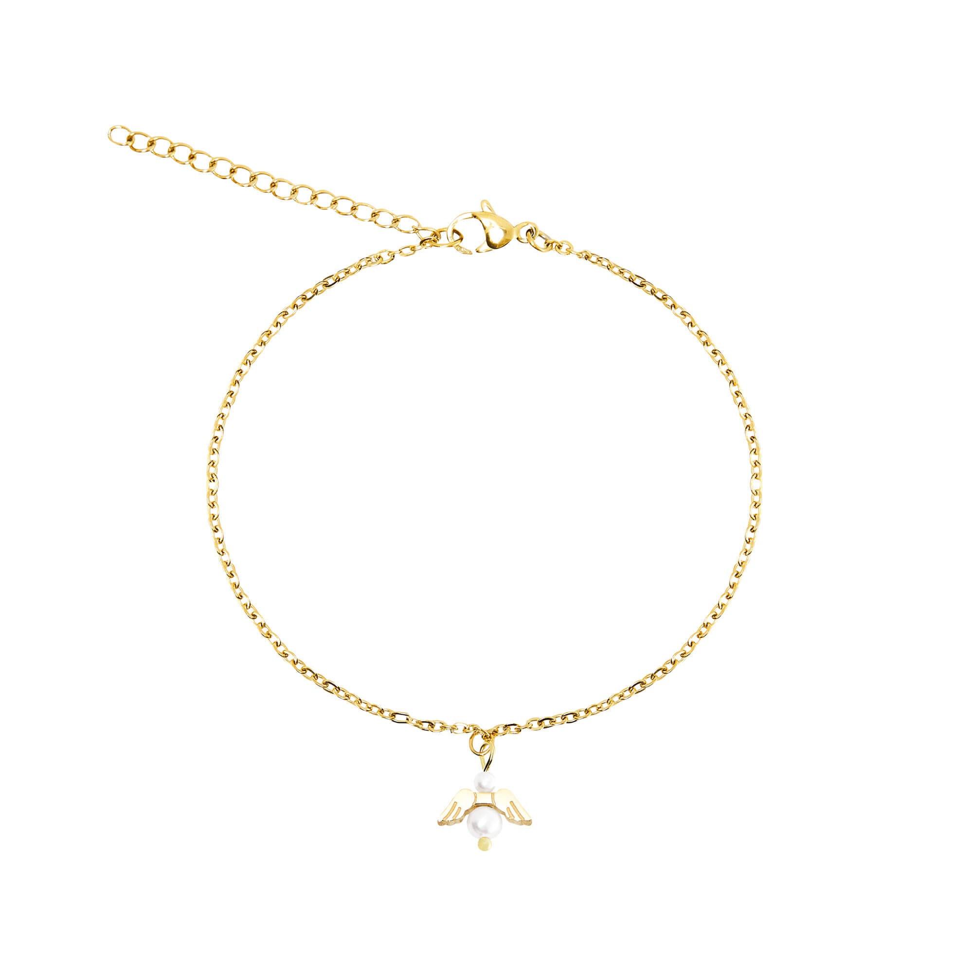 Niedliches Detail des Armbands ist das filigran gearbeitete Schutzengelchen mit feinen Perlmuttperlen, das dem Armband einen verspielten Touch verleiht und es zu einem besonderen Accessoire macht.