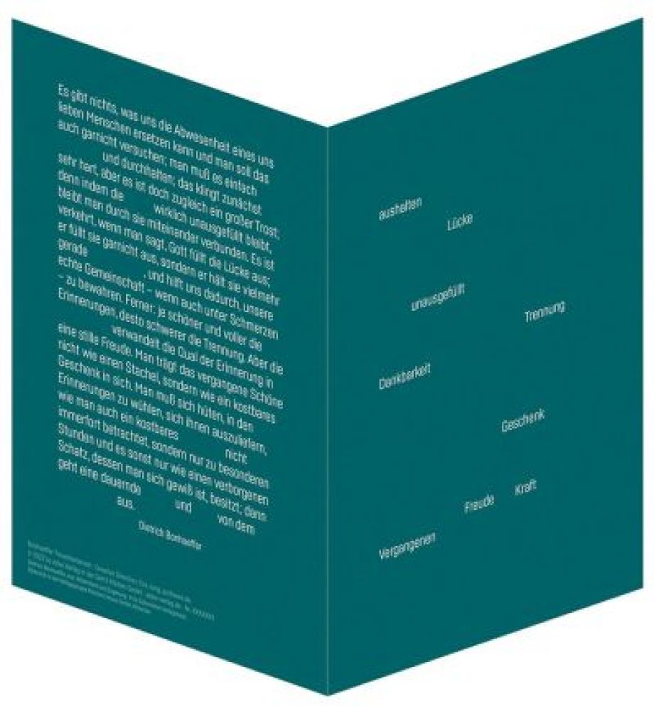 Nach "Weint mit den Weinenden" (Bestellnr. 5572948) inszenieren nun zehn Faltkarten ein bewegendes Zitat Dietrich Bonhoeffers.