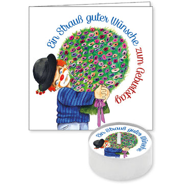 Text auf dem Teelicht: Ein Strauß guter Wünsche