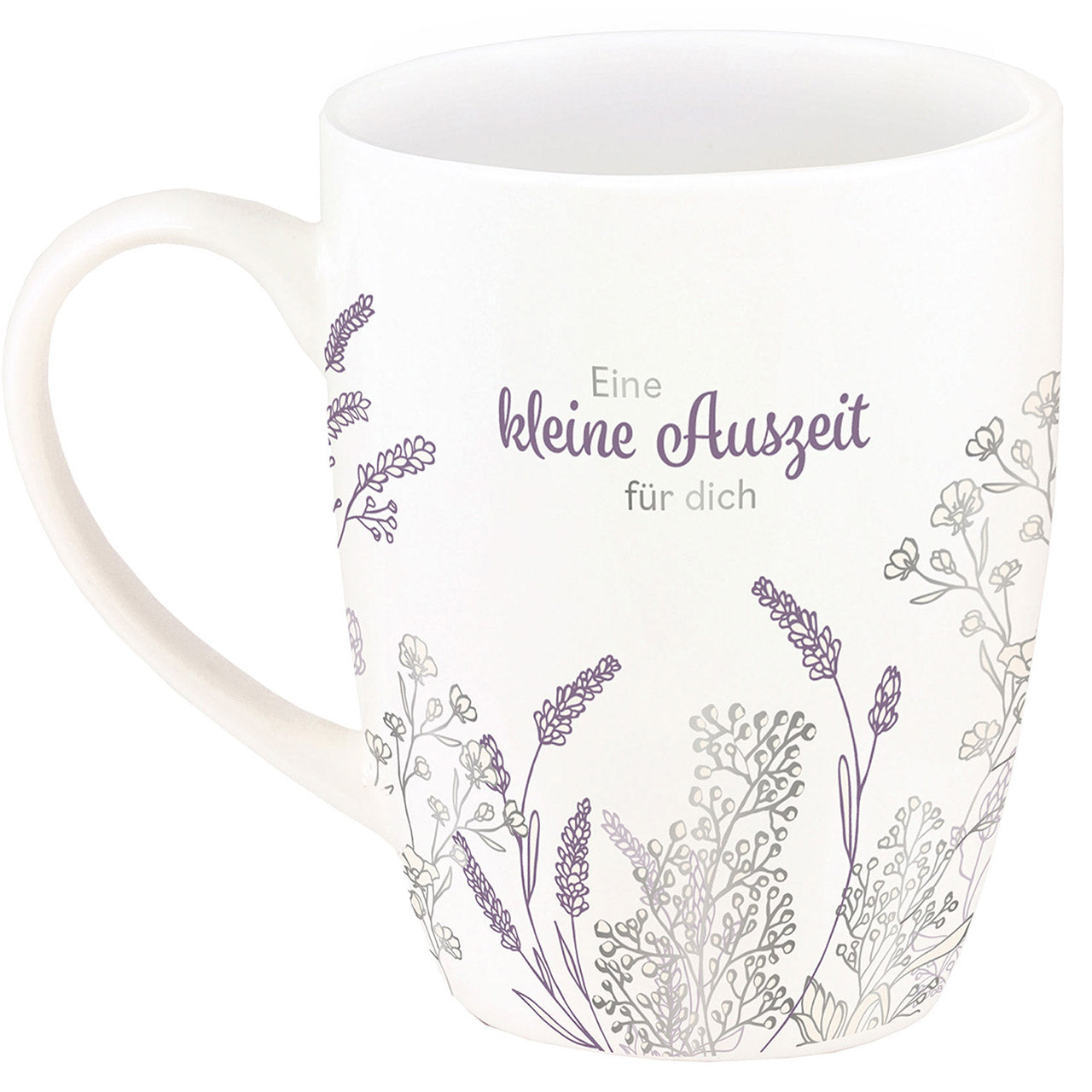 Silber-Tasse mit hübscher Blumengrafik und Silberfolienkaschierung
