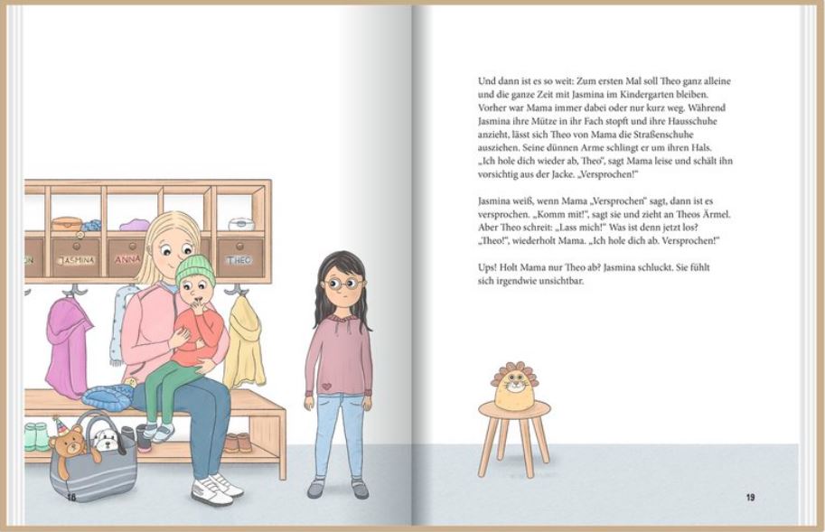 Der größte Wunsch von Adoptivkind Jasmina ist ein Geschwisterkind zum Spielen. Jemand, der wie sie, Mama und Papa die gleiche Mütze trägt. Als Pflegekind Theo zu ihnen zieht, ist Jasmina glücklich. Doch sie merkt auch, dass nicht alles so ist, wie sie es sich vorgestellt hat. Theo mampft ihr Würstchen weg, beschlagnahmt Mama unendlich lange und will die Familienmütze nicht tragen.