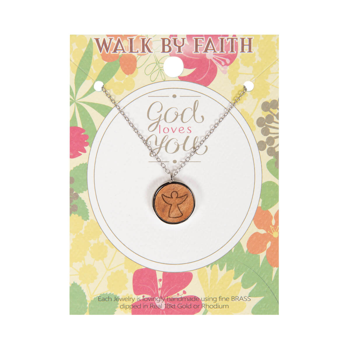 Engel - Halskette aus Edelstahl mit Holz-Anhänger