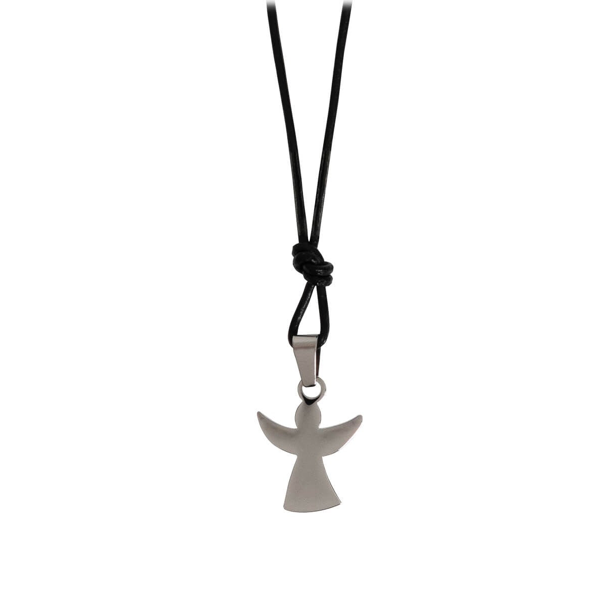 Engel - Leder-Halskette mit Anhänger aus Edelstahl